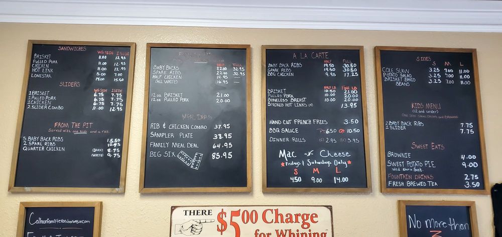 Welcome to Calhoun’s Texas Barbeque, where authentic flavors meet heartfelt community charm in Murrieta, California. This beloved eatery is renowned for its expertly smoked meats, with highlights like fall-off-the-bone ribs and tender brisket that will tantalize your taste buds. Whether you're enjoying a family meal or indulging in a sampler platter, you’ll find an explosion of flavors in every bite.